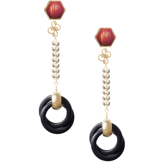 ・赤いトップとブラックのフープの組み合わせで、多彩なシーンやスタイルに合わせて楽しむことができます。また、シンプルながら存在感のあるデザインで、どんなコーディネートにもマッチします。